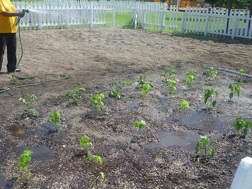 Our second harvest, which was planted February 9th, will be ready by April 3, 2011. We have okra, cabbage, lettuce, beans, greens, broccoli. The main job now is to water daily for 15 minutes.