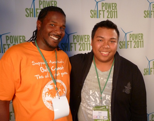 Last night in Washington D.C., a BP clean-up worker and the son of a Vietnamese fishing family spoke to thousands of fired-up youth leaders. Tony Nguyen and Andre Gaines were representing a diverse contingent of over one hundred people who traveled to Power Shift 2011 from across the Gulf Coast. They shared a unified message at the youth climate summit: the BP oil disaster is not over.
