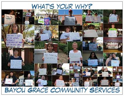 Anyone can submit a response to the "Why" Photo Project by emailing photoproject@bayougrace.org. Go to the Bayou Grace website to fill out a photo release.